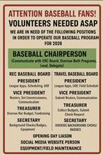 The Emmorton Recreation Council Board is actively looking to fill current positions to save our 2026 Rec and Travel Baseball programs. The following graphic is a list of 12+ positions that MUST BE FILLED in the coming weeks to have a 2026 season.
