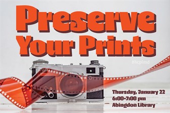January 22, 6 to 7 p.m. Abingdon Library Free admission Harford County Public Library presents Preserve Your Prints on January 22 from 6 to 7 p.m. at the Abingdon Library, 2510 Tollgate Road. If you have a box full of photos, negatives, slides or letters hiding in your closet that you don't know what to do with, this program is for you. Megan Blood, owner of Heritage Photo Preservation, will share with participants, grades 9-adult, how to care for, digitize and preserve special memories. For more information, visit https://programs.hcplonline.org/event/14658321.