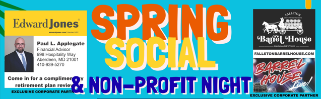 Wednesday 4-1-26 from 5-730pm Fallston Barrel House 2403 Bel Air Rd Fallston MD from 5-730pm Donation required to register. Please register at https://events.ticketleap.com/tickets/connectpromd/spring-social-non-profit-night