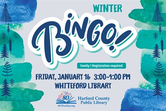 As part of Winter Reading 2026, Harford County Public Library hosts Winter Bingo for the whole family on January 16 from 3 to 4 p.m. at the Whiteford Library, 2407 Whiteford Road. Play winter-themed bingo for fun and prizes. Each person attending must register prior to the event at https://programs.hcplonline.org/event/14650161. The program is supported by the North Harford Friends of HCPL.